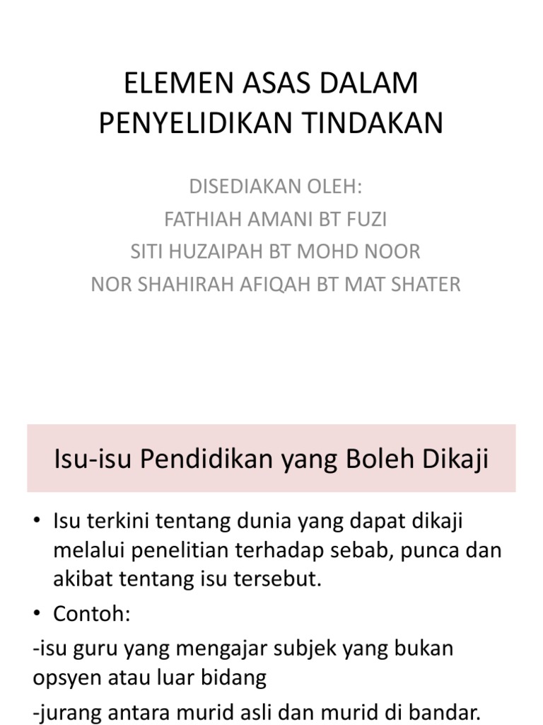 Eleman Asas Dalam Penyelidikan Pendidikan Pptx Eleman Asas Dalam Penyelidikan Pendidikan Disediakan Oleh Lee Shi Min Isu Isu Pendidikan Yang Boleh Course Hero