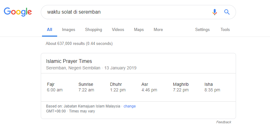 Anda Kini Boleh Mendapatkan Waktu Solat Secara Terus Di Google Oh Media