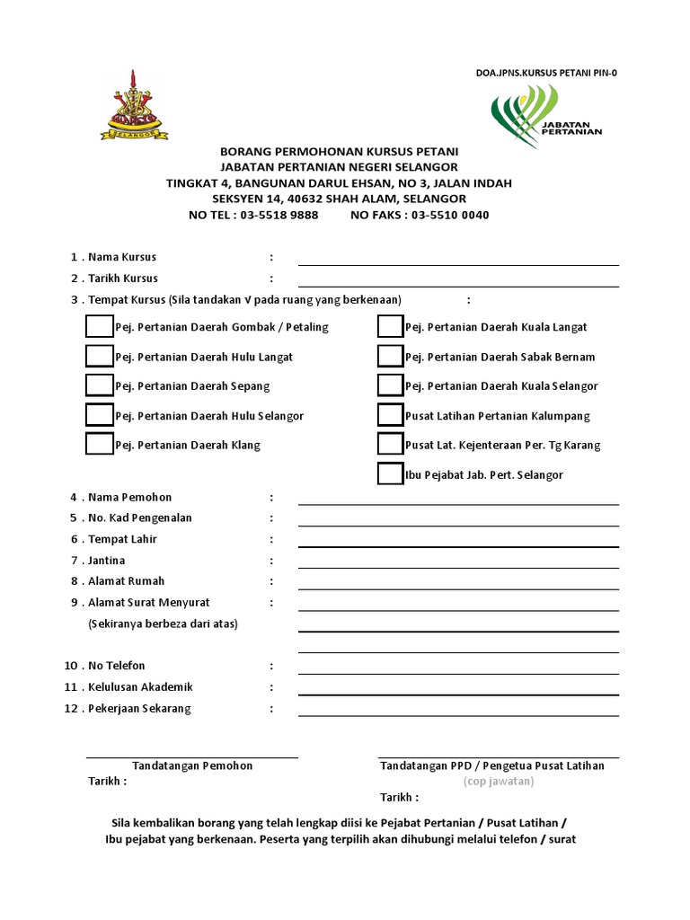 Borang Permohonan Kursus Petani Jpns