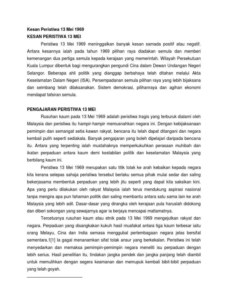 Doc Peristiwa 13 Mei Habibah Hasanuddin Academia Edu