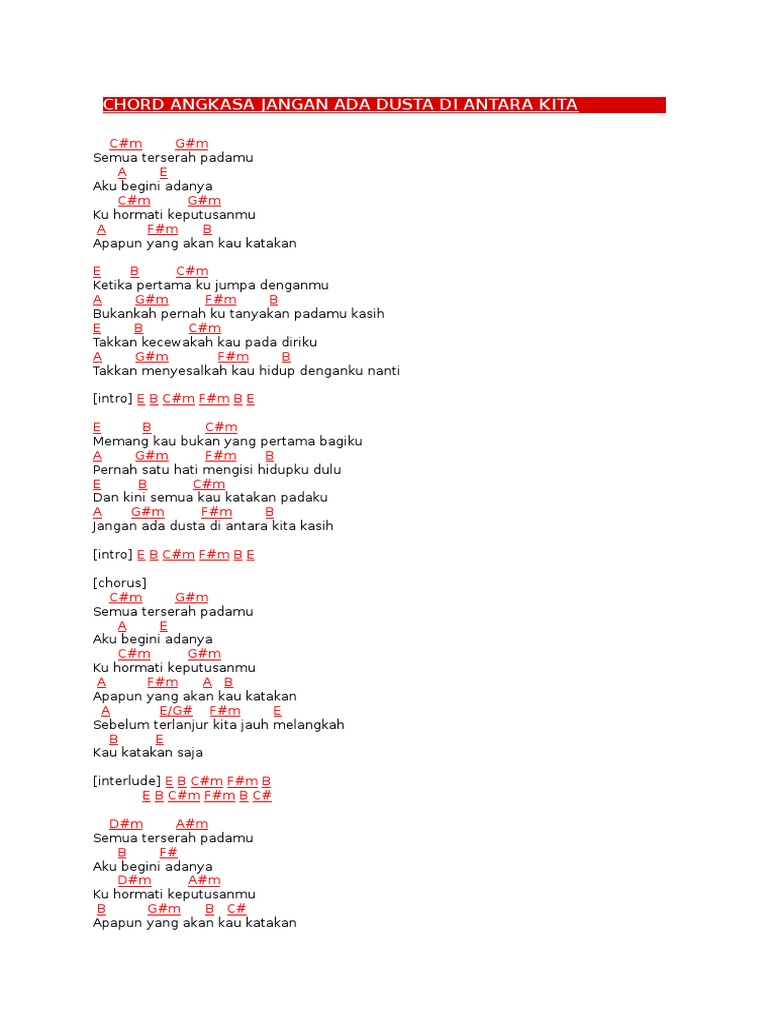 Chord Angkasa Jangan Ada Dusta Di Antara Kita