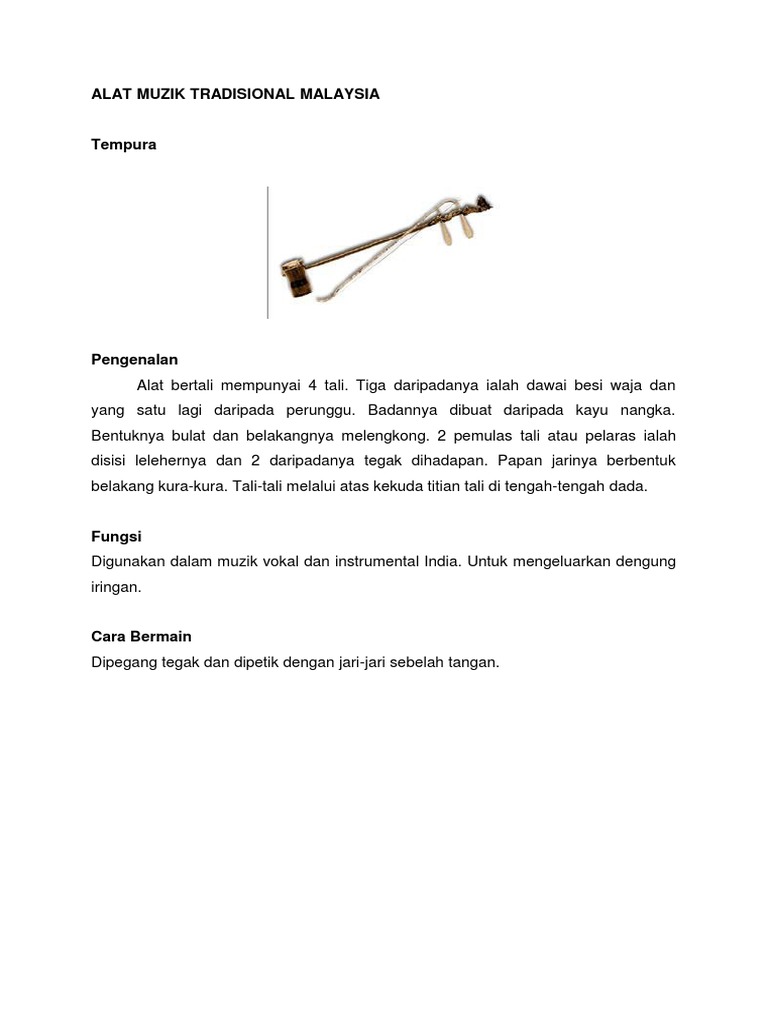 Lembaran Kerja Alat Muzik Tradisional Malaysia