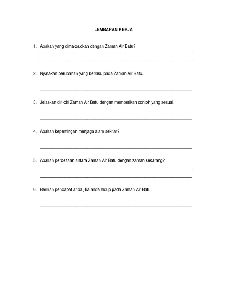 Lembaran Kerja Sejarah Tahun 4 Zaman Air Batu