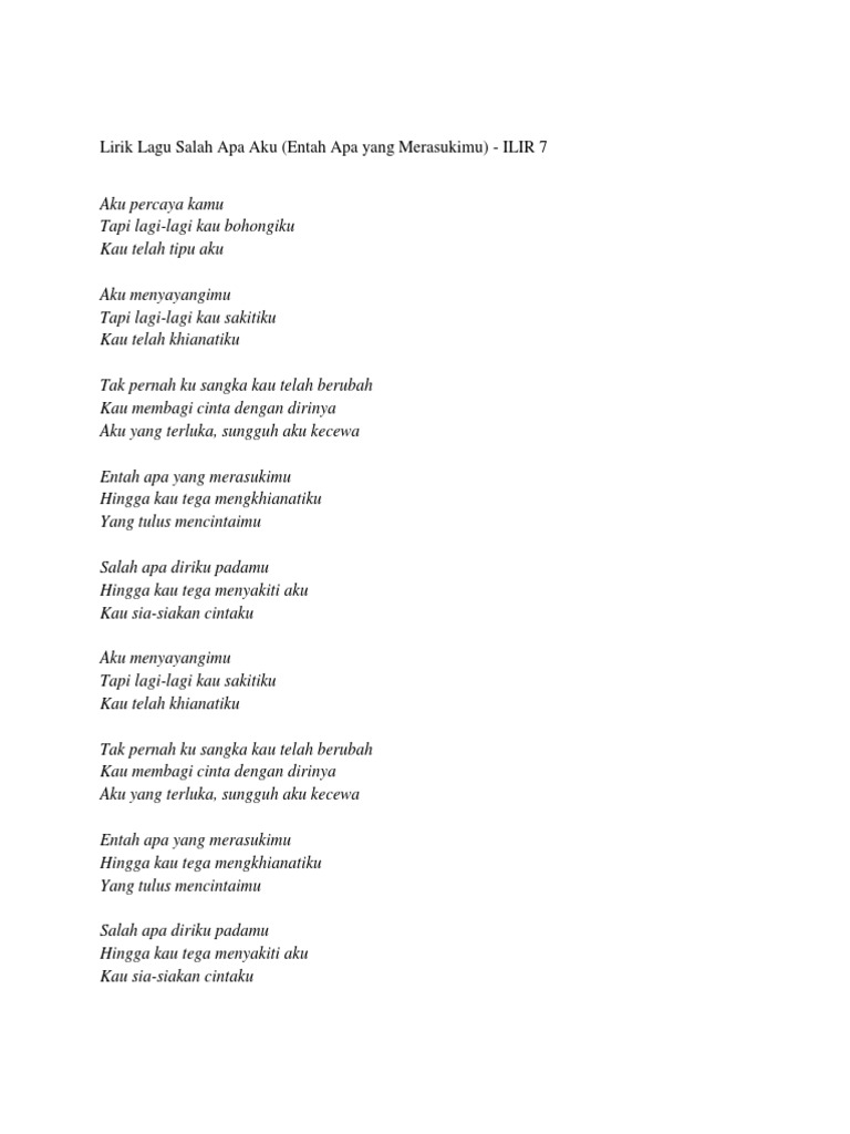 Lirik Lagu Salah Apa Aku Entah Apa Yang Merasukimu Ilir7 Youtube