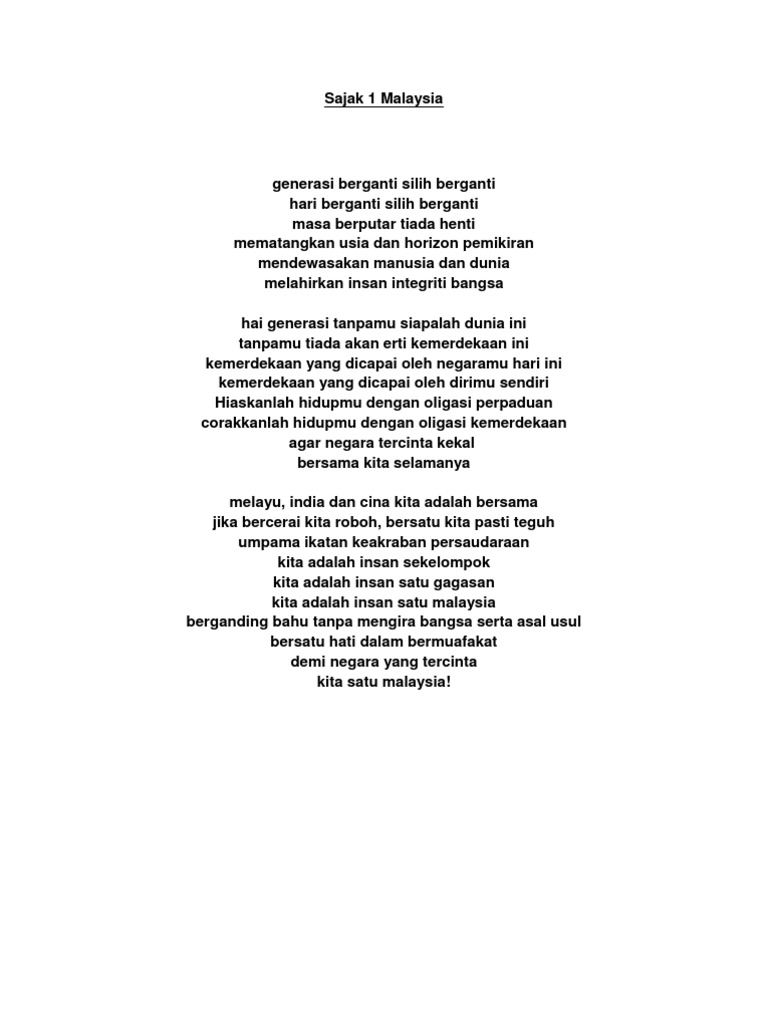 Lirik Lagu Satu Malaysia Satu Bahtera Docx