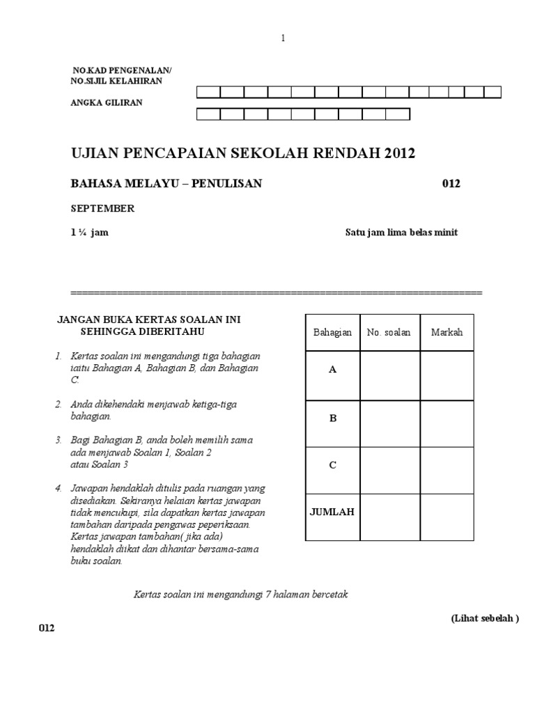 Contoh Muka Depan Soalan Upsr Zkebaya