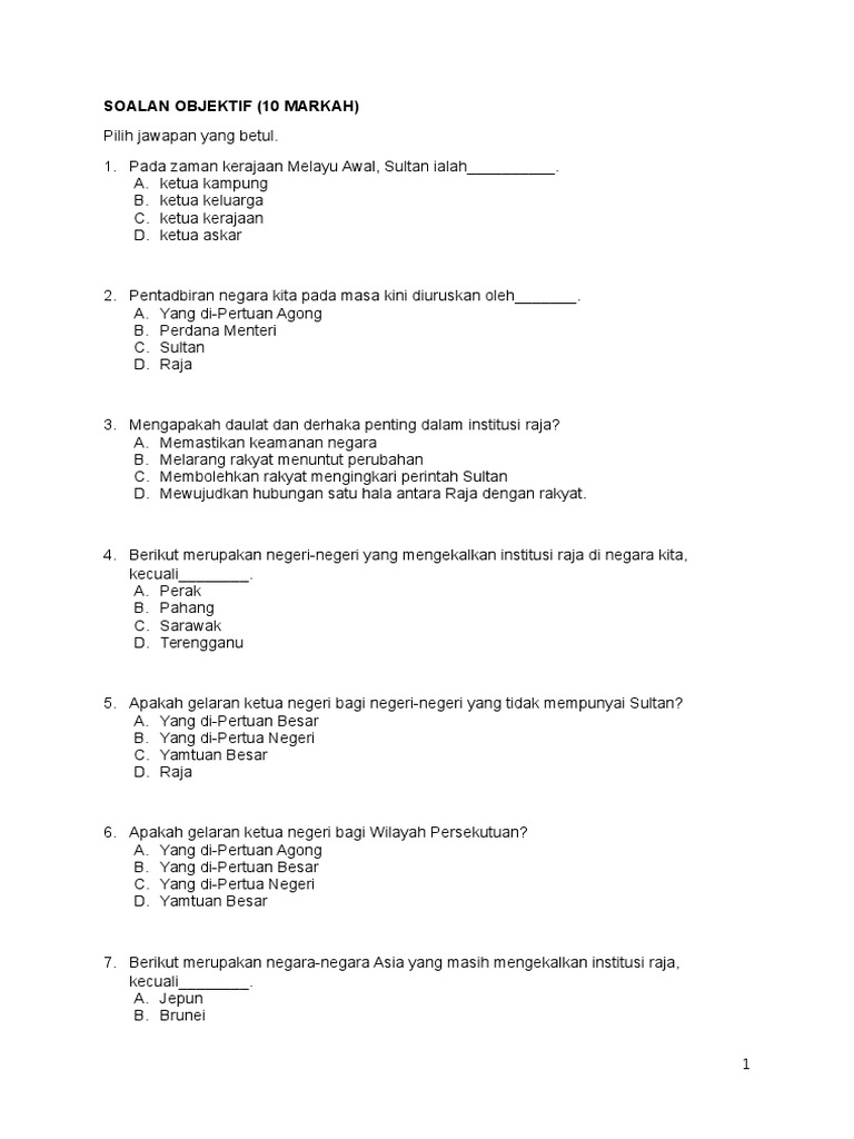 Ujian 1 Sejarah Tahun 5 Pages 1 7 Flip Pdf Download Fliphtml5