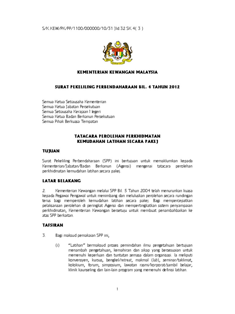 Kementerian Kewangan Malaysia Surat Pekeliling Perbendaharaan Bil 4 Tahun 2012