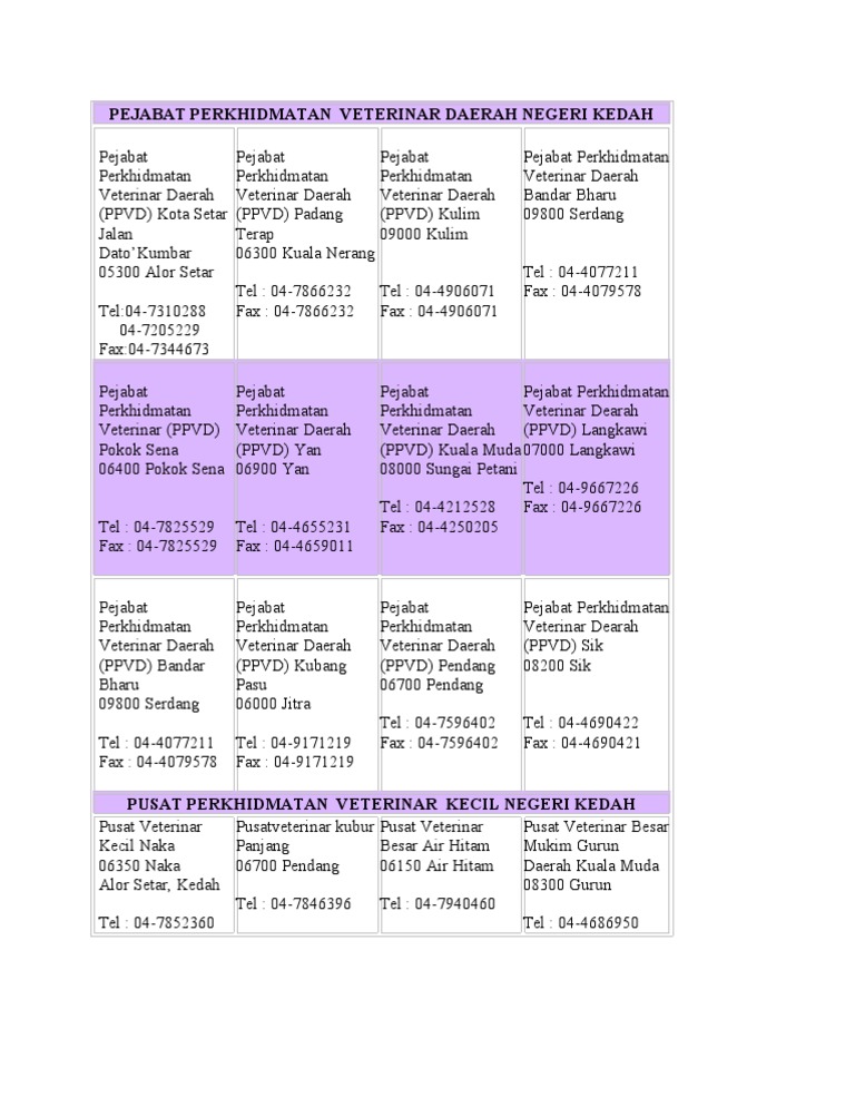 Pejabat Perkhidmatan Veterinar Daerah Kuala Muda 08000 Sungai Petani Kedah