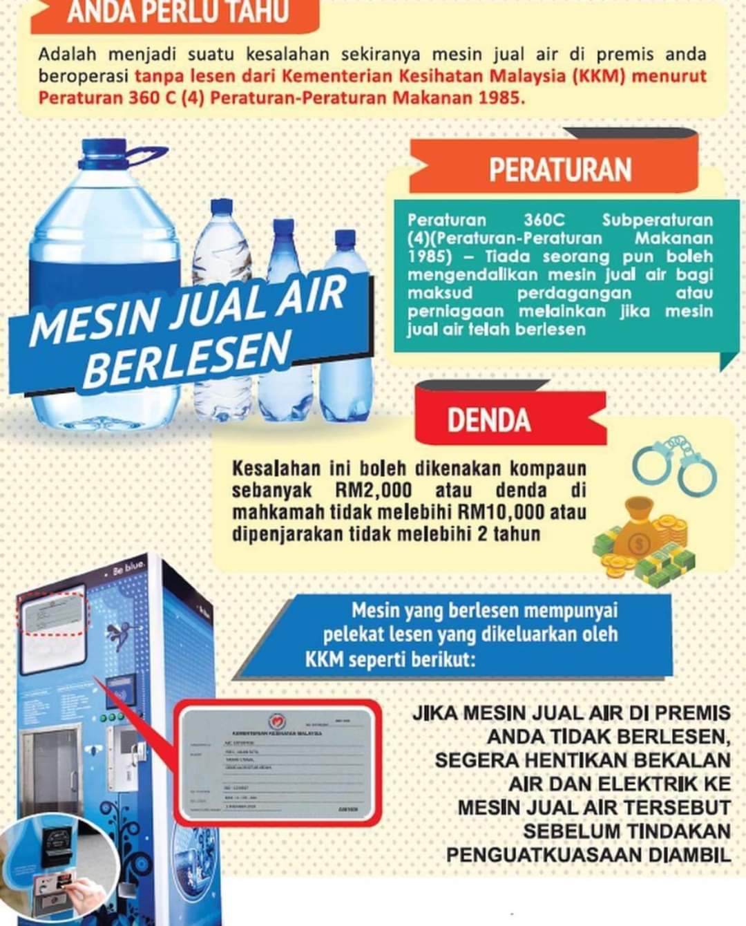 Jabatan Penerangan Negeri Sabah On Twitter Tahukah Anda Mesin Jual Air Mja Tidak Boleh Beroperasi Sekiranya Tdak Mempunyai Lesen Dpd Kkm Spt Yang Termaktub Dlm Peraturan 360 C 4 Peraturan Peraturan Makanan