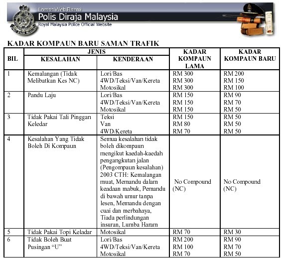 Penang Online Kadar Asas Kompaun Saman Trafik Pdrm Facebook