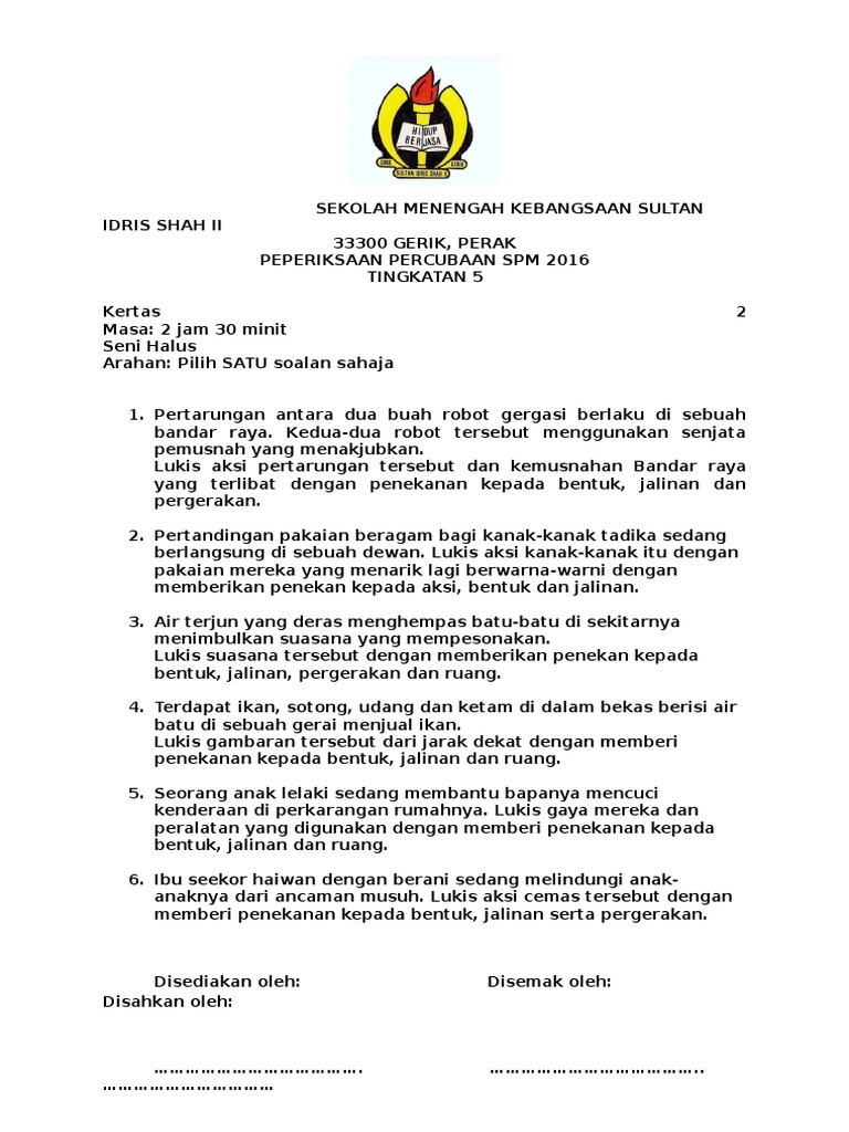 Soalan Kertas 2 Psv Spm 2016 Yang Mana Pendidikan Seni Visual Facebook