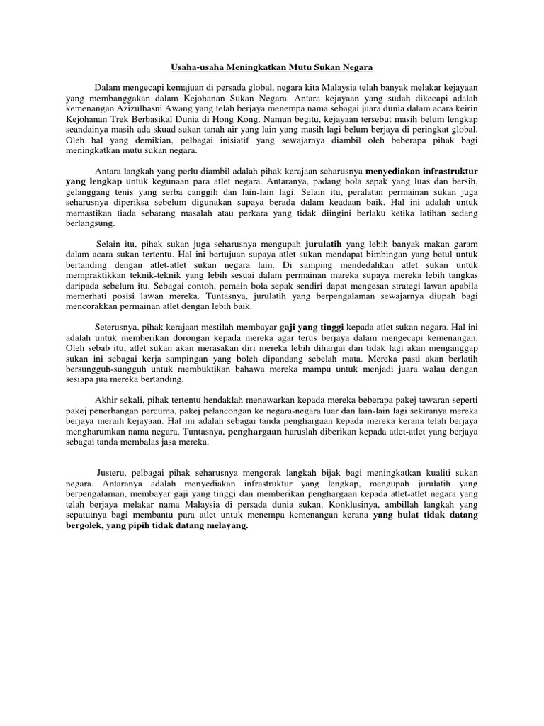Langkah Langkah Meningkatkan Mutu Sukan Negara Docx